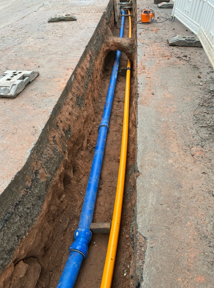 - Verlegung von Gas/Wasserleitungen aus Stahl, Guss, PE und PVC